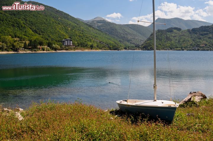 Questo lago artificiale fu creato nel 1951 sbarrando il fiume Sangro nei pressi di Barrea, in provincia de L’Aquila, per scopi idroelettrici e come riserva idrica.