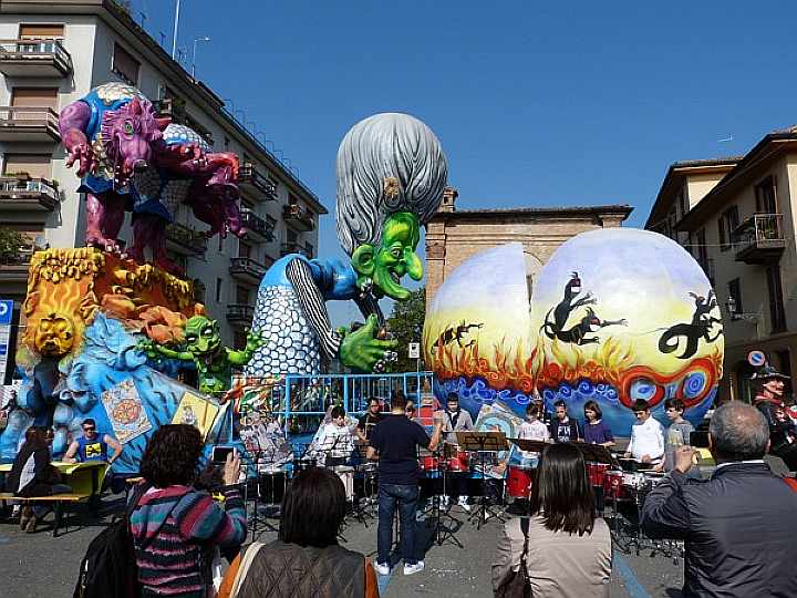 Dalle ore 14:30 alle 17 sfilata di carri allegorici, mascheroni, soggetti speciali, bande – gruppi folcloristici.