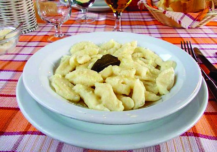 L’ingrediente principale è appunto la Fioreta, ovvero una ricotta semiliquida prodotta nelle malghe e nei caseifici locali, raccolta al suo primo affiorare. Questa viene impastata con la farina, ottenendo così una pastella che si versa a cucchiaiate nell’acqua bollente, da dove emerge in superficie sotto forma di gnocchi, che saranno poi conditi poi con burro di malga e formaggio stagionato.