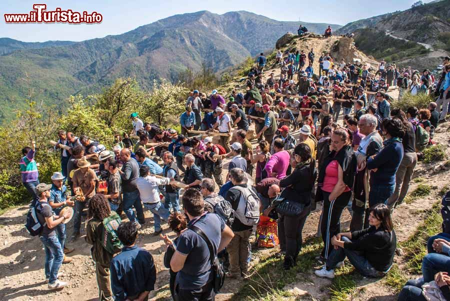 All’inizio il trasporto dell’abete coinvolgeva solo gli uomini, ma oggi vede l’apporto anche delle donne che aiutano i propri compagni lungo un sentiero tortuoso e a tratti scivoloso.