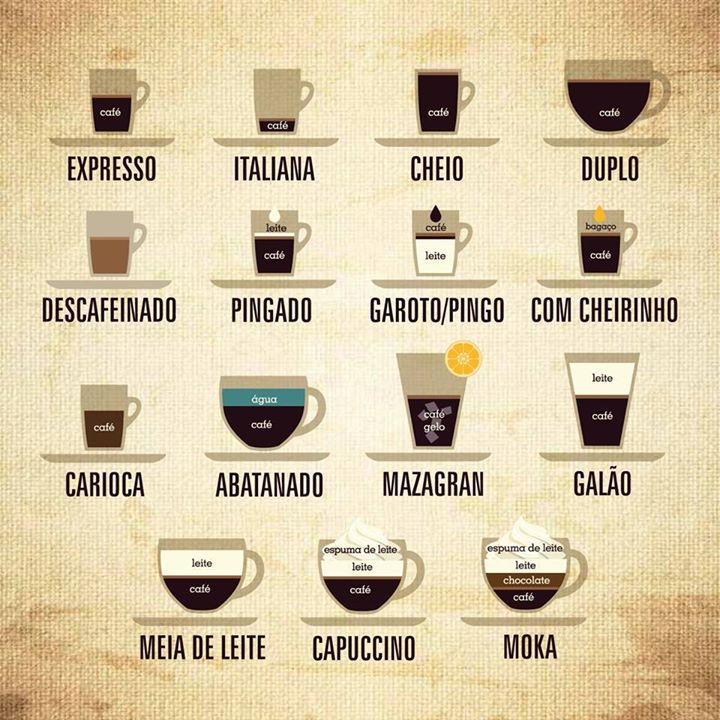 Quando un paese ha la passione del caffè, ovviamente, aumentano le modalità di preparazione e quindi i modi di chiedere un caffè al bar, che qui si chiama “café”, “cafeitaria” o “confeitaria” (quest’ultimo caso se producono anche dolci propri. I bar sono esclusivamente locali notturni per drink).