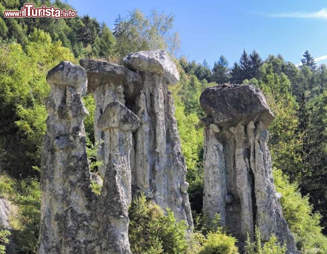 Siamo a Postalesio e le sue piramidi sono formate dalla roccia e dall’erosione degli elementi. Si trovano all’interno di una riserva naturale protetta, istituita nel 1984 e facilmente raggiungibile (cartelli per Maggenghi). Il loro nome dialettale è “pilùn”, cioè pilastri, per la loro forma alta e slanciata che spazia dai 3 ai 12 metri.