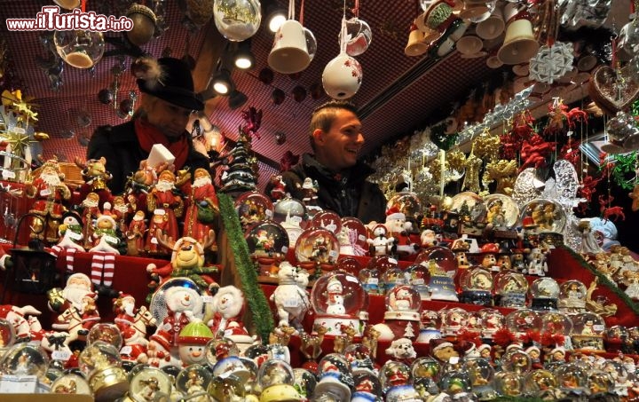 Le bancarelle del mercatino di Natale coprono l’intera superficie della Marienplatz, ma si estendono in più direzioni anche lungo le strade limitrofe.