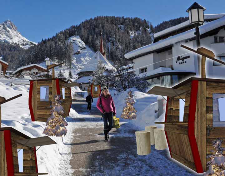 Gli ideatori si sono ispirati nel vero senso della parola a una pista da sci, installando circa 350 metri di luci, simbolo chiave e magico del Natale, posizionate su una striscia continua, proprio come fosse una pista dove poter sciare, con 9 casette in legno e 13 cabine in legno in "stile funivia" che daranno un tocco ancora più montano e natalizio al tutto. Ricordiamo infine che ci sarà anche un concorso di sculture nella neve e l'esposizione di foto storiche invernali, e che giovedì 5 dicembre sarà il momento in cui transiteranno per le vie del paese San Nicola e i terribili Krampus.