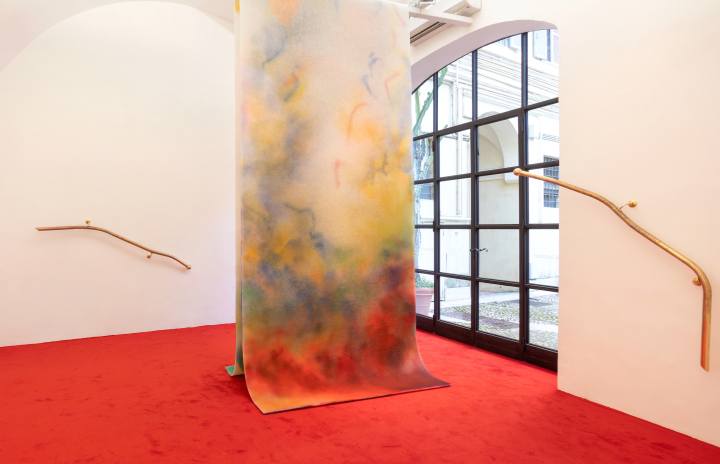 A partire dagli approfondimenti e dalle sue teorie innovative sull’architettura e in linea con i principi della termodinamica, Raham presenta in questa intrigante occasione Climatic Apparel, due capi d’abbigliamento unisex, due prototipi di quella che l’artista definisce “moda del Nuovo realismo”. Corinna Gosmaro si esprime attraverso l’installazione Aria calda: dipinti realizzati su filtri per l’aria e sculture prodotte con dei corrimani in ottone, per una affascinante suggestione tra pittura, scultura e design.