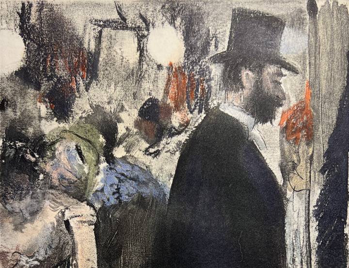 I due aspetti contrastanti della sua vita parigina emergono in maniera esemplare dalle immagini e dagli studi fatti dal vivo, con una particolare attenzione alla forma e al segno. Accanto alla produzione di disegni e incisioni dell’artista – come dalle serie La maison Tellier e La Famille Cardinal e, in facsimile, dal Carnet di disegni per Ludovic Halévy – spiccano altri celebri artisti tra cui Pablo Picasso (acquaforte Degas e Desboutin, serie La Celestine) e Jules Pascin (disegni a inchiostro Maison Close).