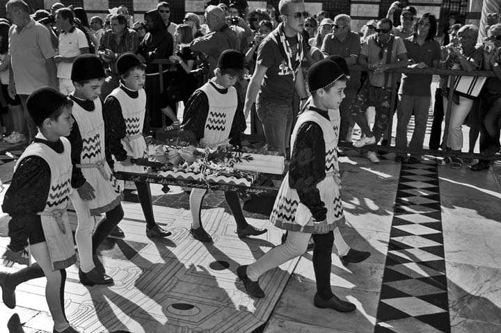 Il giorno dell’evento è regolarmente fissato al 14 agosto e la location della riunione è Piazza Santo Spirito. Mezz’ora dopo ci si ritrova nella Chiesa di San Giorgio, dalla quale il Corteo parte per raggiungere il Duomo.