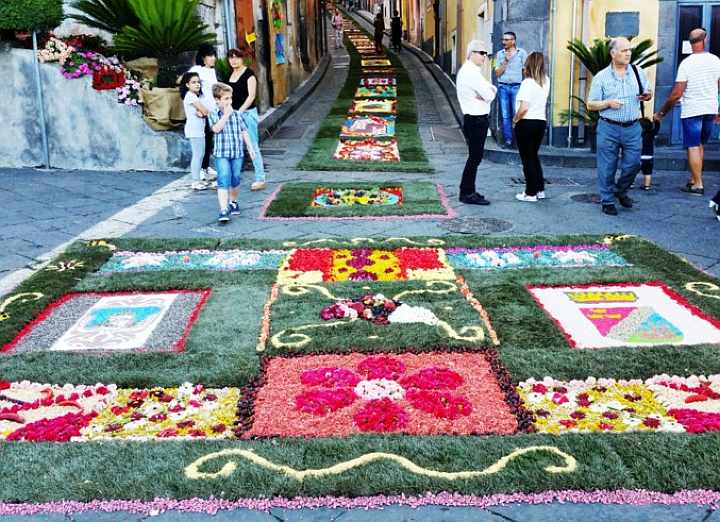 Già acclamata come una delle località più suggestive dal punto di vista floro-faunistico della provincia di Catania, il paese di Sant’Alfio propone quest'anno la classica Infiorata, che accompagna la XIV edizione della sagra “La Ciliegia, Gioiello dell’Etna”.