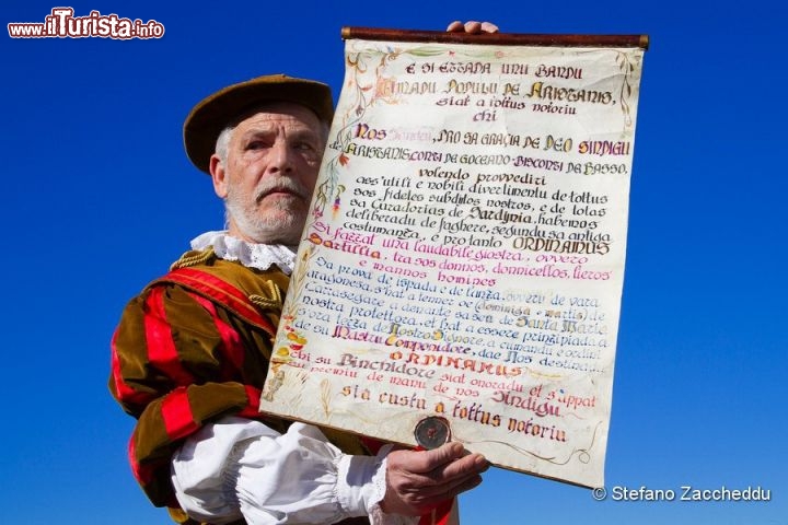 La giornata della Sartiglia si apre con il bando di un araldo a cavallo che attraversa le vie del centro medievale e proclama l'inizio della festa.