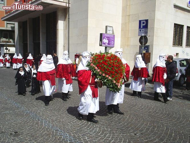 Nel pomeriggio del Venerdì Santo oltre duemila confrati incappucciati, appartenenti alle diverse confraternite, si riuniscono per la processione che scorta lungo la città le Vare di Cristo e dell’Addolorata (il cui fercolo ricorda da vicino quello della Macarena di Siviglia).