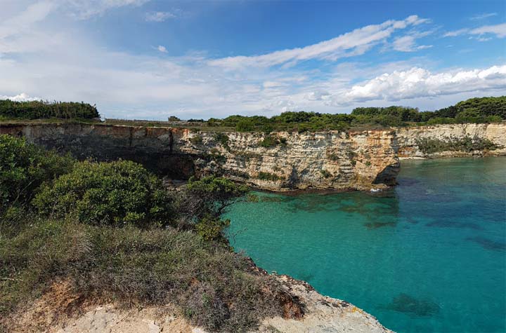 Come arrivare: la cala si raggiunge comodamente a piedi, percorrendo il Lungomare Terra d'Otranto.