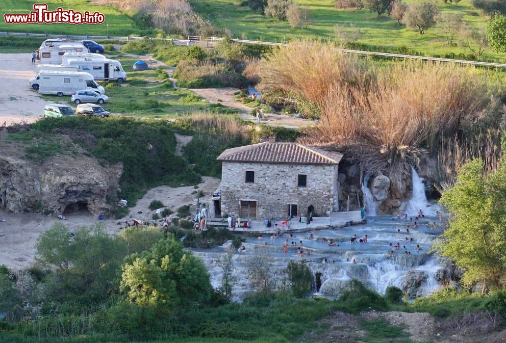 Fra le regioni del Centro Italia, fanno la “parte del leone” quanto a terme da visitare in camper due regioni sopra tutte le altre, cioè Toscana e Lazio. Gli stabilimenti termali e bagni liberi della Toscana, offrono soprattutto un’ ambiente naturale che consente spesso di pernottare gratuitamente ai camperisti più sportivi e molte aree attrezzate nei dintorni dei centri di benessere naturale Spa più famosi. Gli appassionati di viaggi con “casa al seguito” preferiscono in questa regione i famosi bagni liberi del Gorello, dette anche “Cascate del Mulino”, sicuramente le più rinomate in Italia e fra le più conosciute in tutto il mondo per le scenografiche vasche naturali di colore bianco che brillano al sole e sono alimentate da caldissima acqua sulfurea. Nelle immediate vicinanze del bagno termale libero e del reativo stabilimento Saturnia Golf&Spa si può sostare nell’area attrezzata Alveare del Pinzi, che può ospitare camper, auto e roulotte fino ad un massimo di 120 posti e dista appena dieci minuti a piedi dalle vasche termali, oltre ad includere servizio di navetta ogni ora sia per i bagni che per il paese di Saturnia. Fra le preferite dei camperisti ci sono le terme di due località in provincia di Siena, cioè Rapolano e Chianciano.