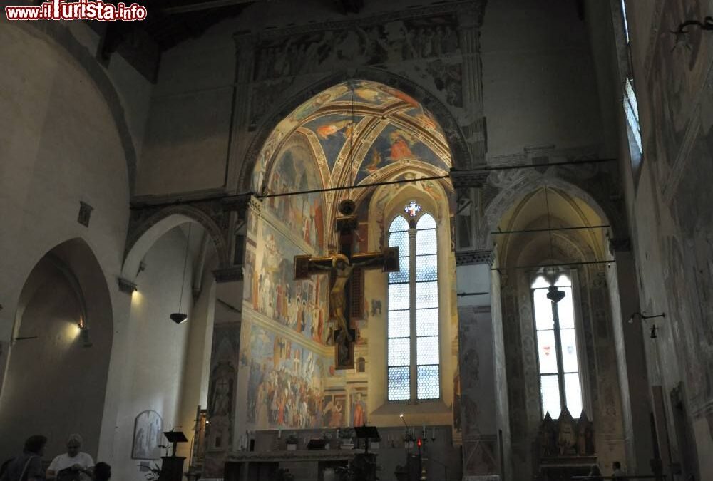 La Cappella maggiore, voluta dall’influente famiglia Bacci, s’adorna di affreschi realizzati nel 1447 da Bicci di Lorenzo, autore dei ritratti dei quattro evangelisti apposti nella volta, dei due dottori della chiesa e del Giudizio Universale a margine dell’arco frontale. Toccò a Piero della Francesca subentrare al predecessore, tant’è che egli portò a termine nel 1466 le quindici scene affrescate della Leggenda della Vera Croce, un ciclo pittorico divenuto assai celebre e perciò preservato da un intervento restaurativo mirato alla fine del quale la cappella si è ritenuta idonea alle visite venendo di fatto musealizzata.