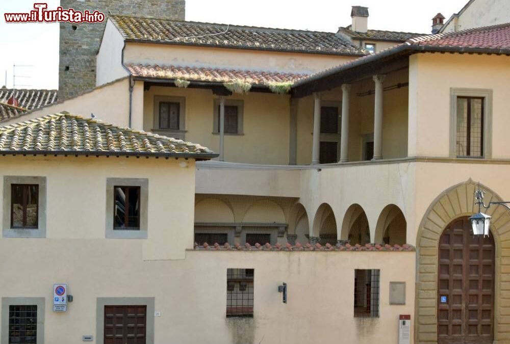 L’odierna dimora le cui basi primigenie duecentesche sono visibili al piano terreno, si trova non lontano da Piazza Grande ed ospita la settecentesca Accademia Petrarca di Lettere Arti e Scienze e una fornitissima biblioteca recante tra gli altri il fondo di Francesco Redi, incunaboli e bibliografie antiquarie. Sovrastanti librerie risultano pingui di tomi estremamente antichi, pezzi unici e rari sottratti razionalmente alla polvere malsana dell’oblio e conservati gelosamente. Interne al domicilio si pongono all’ammirazione dei visitatori una valente quadreria – intesa con essa una folta collezione di dipinti che trasudano arte sopraffina – e una nutrita collezione numismatica con circa 500 monete coniate e circolate fra il IV secolo a.C. e il 1300.