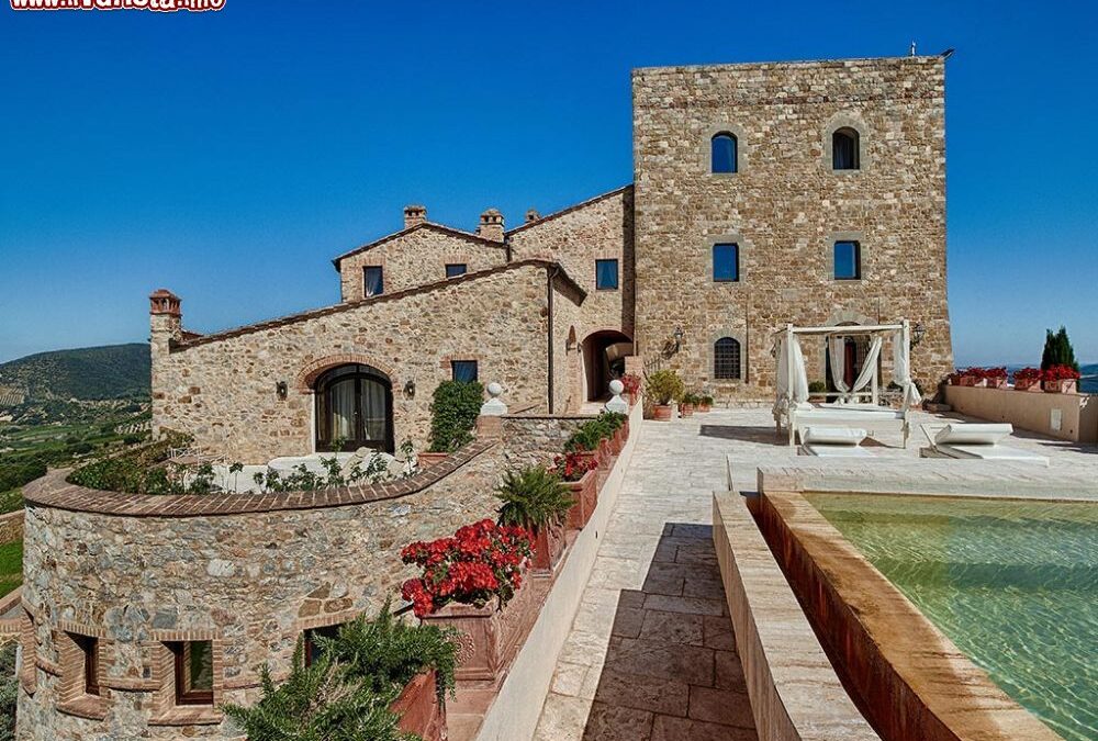 A una decina di km da Montalcino (8 per l’esattezza), quest’antica costruzione racchiude mille anni di storia: memoria di quella che fu l’antica rivalità fra Siena e Firenze, la Torre di Guardia del maniero è tutt’oggi integra (risale al XII° secolo); di epoca tardo medievale è invece la parte retrostante della struttura.