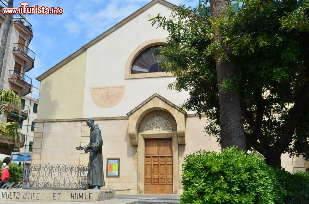 In origine si trattava di una piccola cappella con abside rivolta verso il mare della spiaggia della Coscia, dedicata alla Madonna del Soccorso. L’ampliamento strutturale si ebbe nel corso del ‘600 e constò del Convento dei Frati Cappuccini. L’aspetto attuale è quello che già si poteva riscontrare nel ‘700, sicché questa immutabilità la dice lunga sulla volontà da parte dei cittadini e della stessa Diocesi di preservarne l’impianto originale, il più significativo ed emblematico, glorificato dal sobrio stile francescano. In effetti sono tantissimi i rimandi al Santo di Assisi, dalla piazza che reca il suo nome alla statua bronzea posta frontalmente all’edificio e a presiedere la vasca ottagonale in travertino nella quale nuotano cangianti pesci rossi, osservati da sculture di piccioni fissate ai lati. Intorno al basamento della vasca compare la scritta “Laudato si mi Signore per sor acqua la quale è molto utile et humile et pretiosa” (Sia lodato il mio Signore per sorella acqua, la quale è molto utile e preziosa) e nel livello inferiore caratteri metallici compongono la scritta “Santo Francesco Patrono d’Italia A.D. 1939 XVIII".