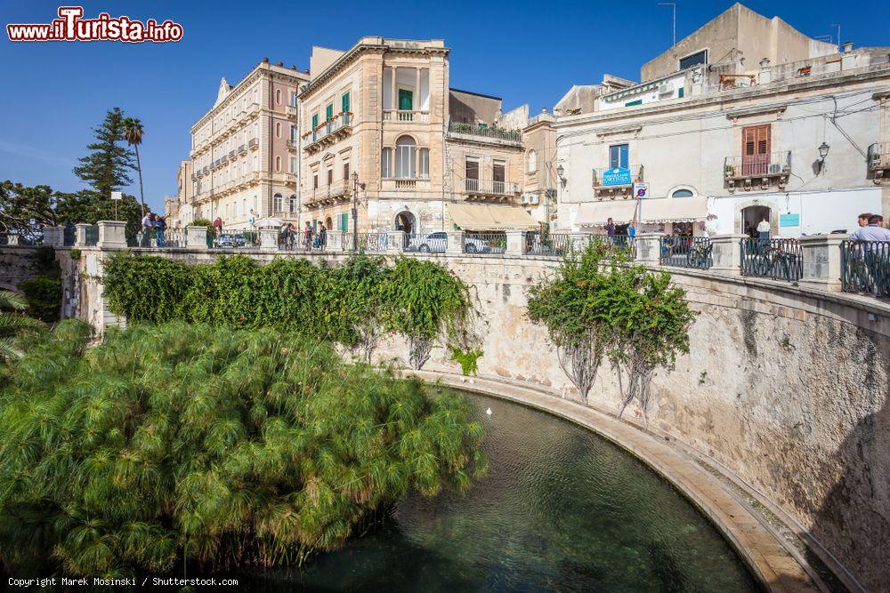 Nota ai più per il mito di Alfeo e Aretusa (da cui deriva il nome di questo specchio acquifero), sfocia nelle acque salate del porto grande di Siracusa. Nei secoli ha subito diverse trasformazioni: prima esterna alla cinta muraria cittadina a cui si poteva accedere da una ripida scala direttamente dal mare, poi divisa in più rivoli e utilizzata per conciare le pelli e inseguito inglobata alle fortificazioni quando per volere di Carlo V° la struttura difensiva di Ortigia venne potenziata.