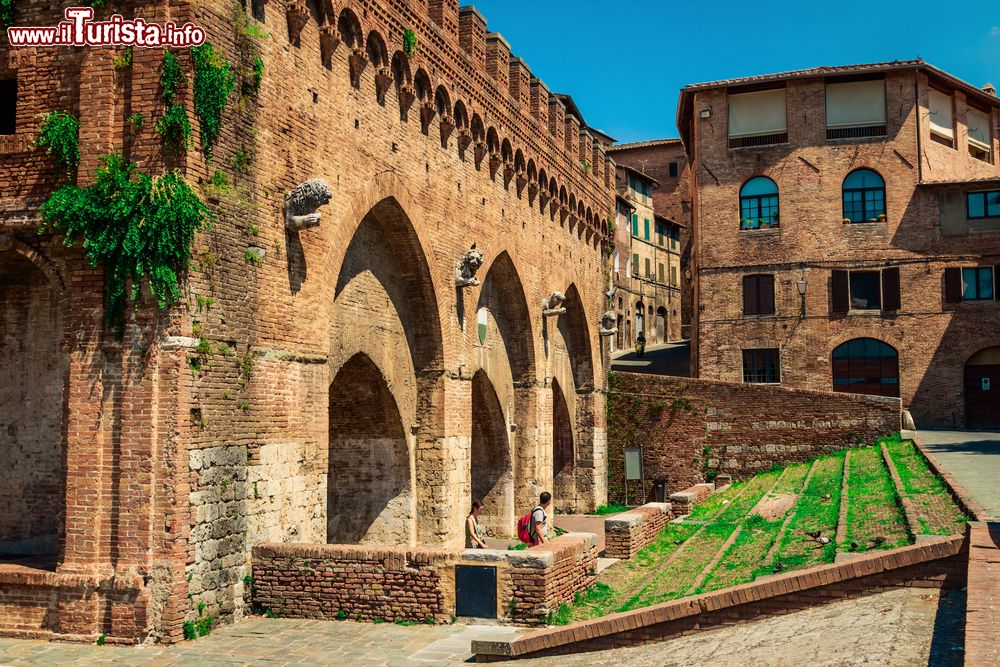 Quest’ennesima perla senese è composta da tre ampie arcate gotiche ogivali sovrastate da un’evidente merlatura guelfa e una sequela di archi ciechi caratterizzati da motivi triangolari. La Balzana, stemma della città, compare al centro della facciata in coabitazione a quattro statue leonine. L’interno si contraddistingue per l’incredibile dedalo di condutture, la cui lunghezza complessiva supera abbondantemente i 25 km passanti nel sottosuolo di pietra arenaria.