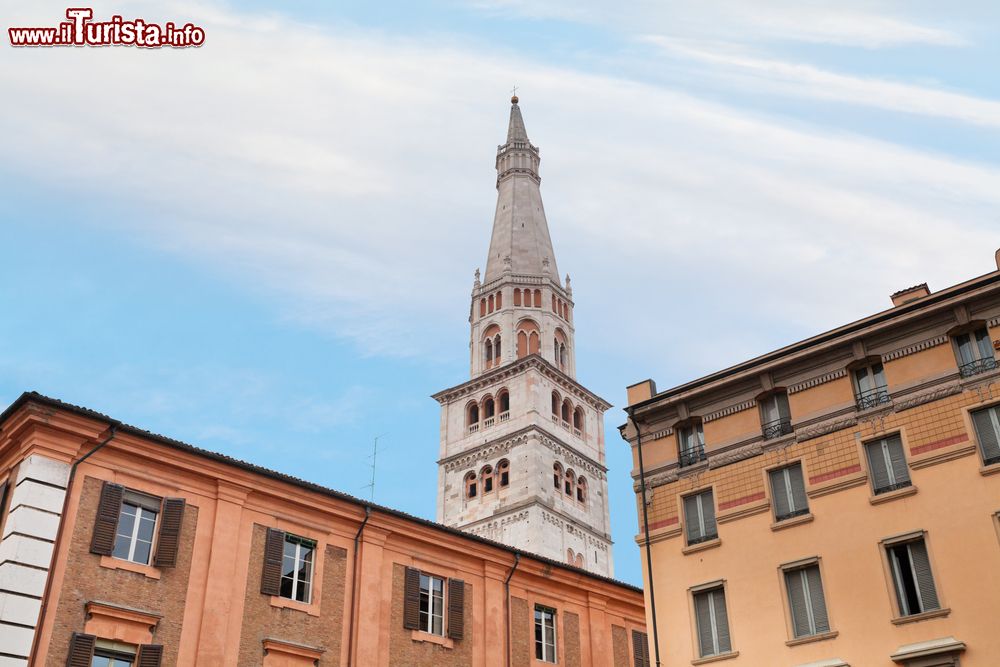 Ha una storia millenaria quanto quella del Duomo cui è strettamente legata. Rivestita, come il Duomo, di materiali lapidei provenienti dalla Mutina romana, fu cominciata e terminata nei suoi primi cinque piani nel 1169, mentre per l’ultimo piano e per la bellissima guglia, progettata da Enrico da Campione, si dovrà aspettare tra il 1261 e il 1319.
