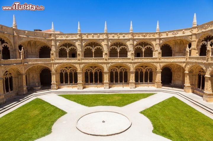 L’esterno è sfarzoso e colpisce per la magnificenza dei portali, mentre l’interno è più semplice, formato da una sola navata e da varie cappelle fra le quali si distinguono la Cappella Maggiore, la Sacrestia e il Pantheon reale. Il chiostro è uno dei più ammirati di tutto il Portogallo, per la forma quadrangolare e le tante sculture con decorazioni elaborate. I frati dell’Ordine di San Geronimo che lo occupavano si dedicavano principalmente alla vita contemplativa. Le porte delle loro celle sono discrete e semplici, quasi a stabilire una distanza dalla ricchezza architettonica che li circondava. I portici del chiostro interno, anch’esso decorato e ricco di quei riferimenti così tipici dello stile manuelino rappresentavano uno dei rari momenti di incontro fra i religiosi, normalmente raccolti all’interno delle loro stanze.