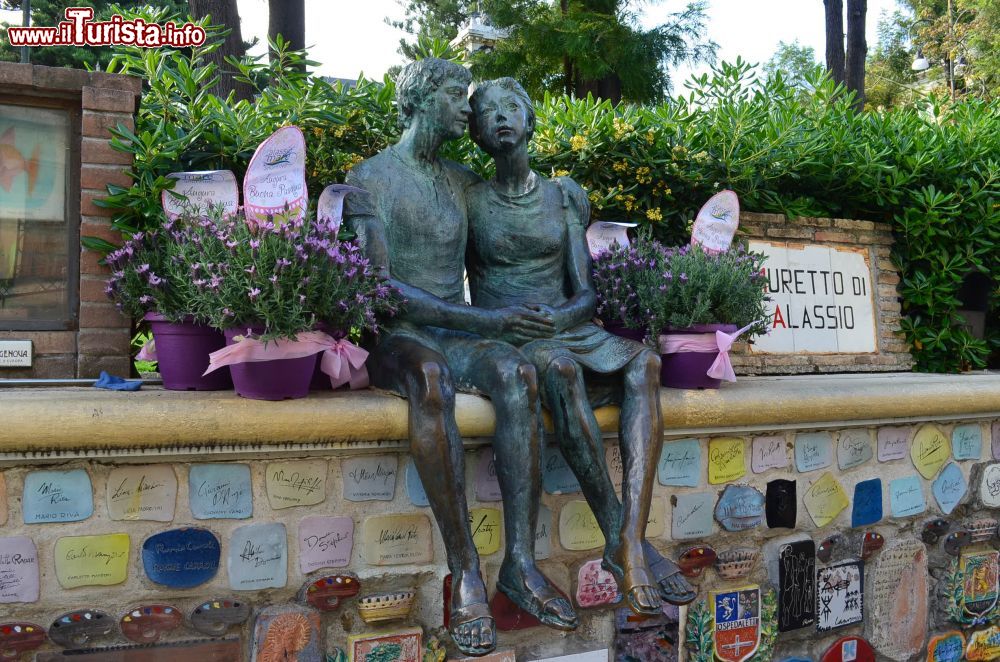 Nel corso dei decenni, il Muretto (posto in C.so Dante Alighieri, di fronte al Municipio), ha definitivamente abbandonato la sua antica veste e il minimalismo che lo costringeva, incrementando la propria bellezza con innovativi elementi estetici di notevole gusto ma quasi mitizzati da uno stretto rapporto con la favola e l’aneddotica soave. Da un anno all’altro si sono visti spuntare la statua della coppia degli innamorati (simbolo del Muretto), la corona di Adelasia (da cui sembra sia derivato il nome di Alassio) e dello sposo Aleramo (figlio del duca di Sassonia), la Primavera di Vanni Penone, il mosaico in ceramica di Valentino e Valentina e le due cicogne (si dice che toccando una gamba si possa sperare in una prossima gravidanza per la donna).
