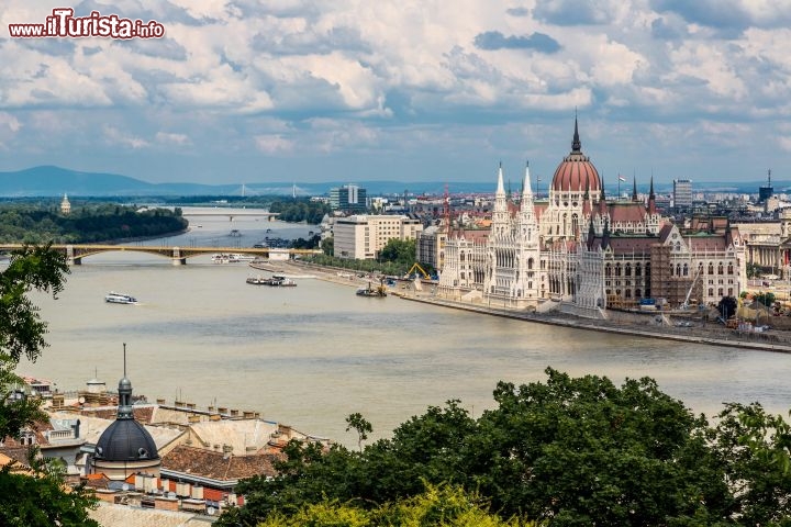 Il Palazzo del Parlamento di Budapest, in stile neogotico-ecléttico, fu costruito tra 1885-1904 secondo i progetti di Imre Steindl, uno degli architetti ungheresi piú importanti dell’ottocento. La struttura simmetrica dell’edificio corrisponde alle funzioni di un parlamento a due camere. All’epoca della costruzione il Parlamento ungherese aveva due camere. L’edificio occupa una superficie di quasi 18.000 mq, é lungo 268 m, largo 123 m, alto 96m. Ha 27 entrate, 29 scale, 13 ascensori, 10 cortili, 691 locali. La facciata principale è quella che si affaccia sul Danubio, anche se l'ingresso principale si trova sul lato opposto, sulla piazza Kossuth. La scala d’onore che conduce alla cupola, progettata al centro dell'edificio é uno dei capolavori di Steindl. Particolare attenzione va data anche alle meravigliose composizioni artistiche su vetro, opere di Miksa Róth, il più bravo pittore ungherese eseguite su di un vetro dell'800. Sul soffitto si vedono due affreschi allegorici di Károly Lotz: „Apoteosi della legislazione”, „Apoteosi del’Ungheria” ed in centro due angeli tengono l’antico stemma dell’ Ungheria.