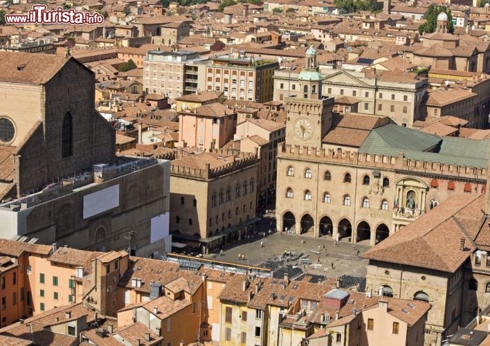 Il Palazzo del Podestà, sul lato settentrionale della piazza, è coronato dalla Torre dell'Arengo, dove si trova una campana di cinque tonnellate che suonava per chiamare le truppe alla difesa della città dagli invasori. Alle sue spalle, Palazzo Re Enzo venne costruito come ampliamento del Palazzo del Podestà: qui rimase in prigionia il re Enzo (figlio di Federico II di Svevia), che vi morì nel 1272.