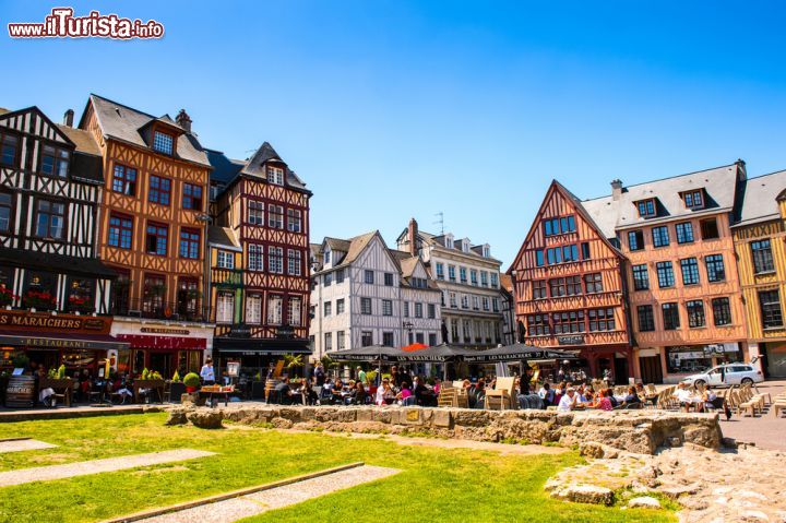 La piazza del Vecchio Mercato si trova a Rouen, una cittadina normanna pregna di fascino, che regala spettacolari scorci artistici e architetture preziose, che si regge in armonico equilibrio tra spiritualità e leggenda, storia e modernità. Situata nel centro storico di Rouen, racchiude come uno scrigno del tempo il ricordo della fanciulla guerriera. Si può raggiungere la piazza proveniendo dalla torre dell'orologio, camminando tra suggestioni e architetture gotiche, fino ad affacciarsi sulla piazza che oggi appare molto diversa da quel lontano 30 maggio del 1431, giorno in cui Giovanna d'Arco fu giustiziata. All'epoca la Place du Vieux-Marché era decisamente più ampia, con spazi aperti e pochi edifici attorno.