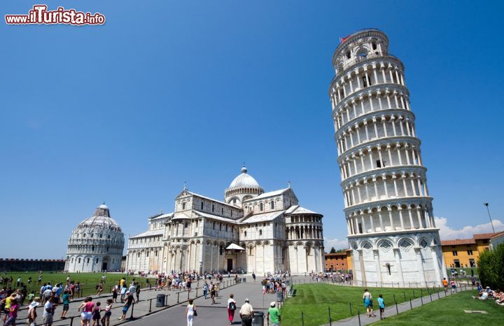 Poco distante dalla cattedrale, seguendo le sue forme tondeggianti, si erge la famosa Torre Pendente, sotto la cui ombra i turisti si susseguono in un andirivieni ininterrotto di sorrisi e flash, riuscendo quasi a scalfire la magia di una piazza così intimamente mistica.