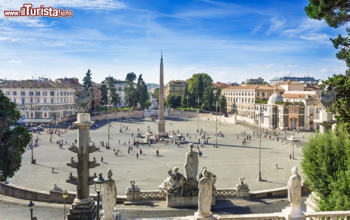 L’assetto attuale della piazza, con la sua elegante forma ellittica e le due enormi esedre laterali, anch’esse adornate da fontane, è opera neoclassica dell’architetto Giuseppe Valadier che nell’Ottocento, trasformò radicalmente il luogo rendendolo una delle piazze più scenografiche di tutta la città. Piazza del Popolo è così ancora di più uno spazio di vita e di incontro per la gente comune che qui si raduna per passeggiare, per concerti, manifestazioni, spettacoli e da alcuni anni nuovamente per il meraviglioso Carnevale Romano, antica tradizione cittadina.