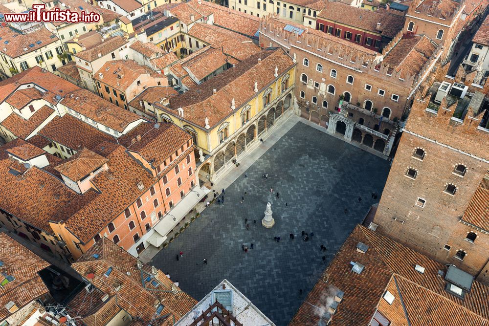 Ad affacciarsi su questa bella area del centro storico sono alcuni dei monumenti simbolo di Verona a iniziare dal Palazzo della Ragione. Costruito verso la fine del XII° secolo, l’edificio sorge fra Piazza dei Signori e delle Erbe: inizialmente proprietà privata, divenne del Comune dopo un terribile terremoto che distrusse buona parte della città. Il Palacium Communis Veronae, fra i primi sorti nel territorio italiano, ospitò riunioni del consiglio, l’ufficio dei pegni e il magazzino del sale e, all’epoca degli Scaligeri, pure il Banco di Giustizia. Fu poi la volta del collegio dei Notai e con la conquista di Verona da parte della Repubblica di Venezia di uffici giudiziari e delle carceri. Fu infine attorno al 1493 che assunse il nome di Palazzo della Ragione: nel corso dei decenni successivi subì ancora cambiamenti e destinazioni d’uso sino a quelli più recenti che ne hanno fatto la splendida cornice della Galleria d’Arte Moderna Achille Forti. Questa costruzione fortificata, progettata con 4 torri angolari di cui ne rimane solo una, quella dei Lamberti (di altre due, della Cappella o Torrazzo e della Masseria, rimangono ancora tracce mentre di una quarta non vi sono testimonianze), fu trasformata e ampliata acquisendo la foggia neoclassica, in parte, però poi modificata con il ripristino dell’aspetto originario.