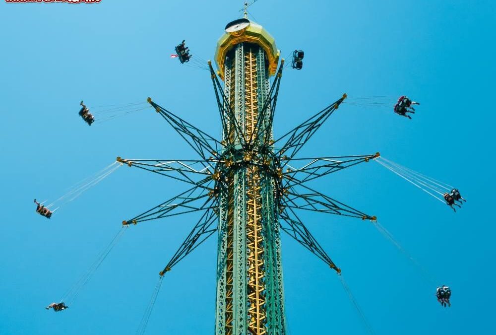 Questa attrazione di Vienna, che fa appello ai turisti di tutte le età, si chiama Praterturm, la torre del Prater. Si tratta di una giostra a seggiolini, meglio nota come calcinculo, di 117 metri di altezza, e cioè alto quanto un edificio di 33 piani!
