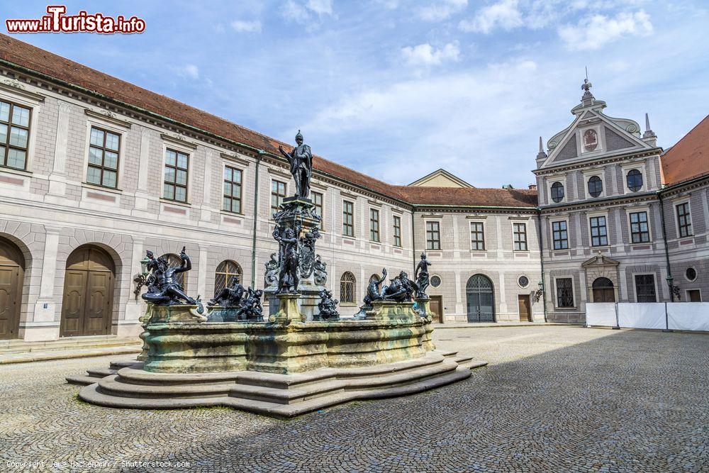 All’esterno si possono ammirare il Grottenhof, il più antico dei cortili della reggia, con la fontana in bronzo di Perseo, e l’Hofgarten, il giardino reale, in cui risplendono il tempio dedicato a Diana (ritrovo per musicisti), quattro fontane gemelle e il Palazzo del Governo Regionale (Cancelleria bavarese).