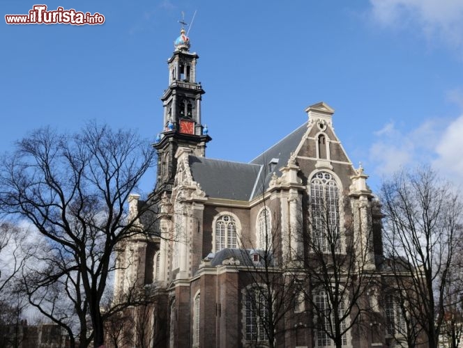 Il più importante luogo d’incontro della comunità olandese riformata di Amsterdam è Westerkerk, la “Chiesa Occidentale”. L’edificio, costruito in stile barocco tra il 1620 e il 1631 su progetto di Hendrick de Keyser, si trova all’interno del quartiere Jordaan, sulle rive del canale Prinsengracht, nella cerchia occidentale dei canali. Per molti questa è la zona che meglio rappresenta lo stile compassato, ma garbato della capitale olandese. Oltre al grande valore spirituale, Westerkerk detiene un record invidiabile: è la chiesa dotata della torre campanaria più alta della città: 85 metri nonchè la più grande chiesa protestante d'Olanda.