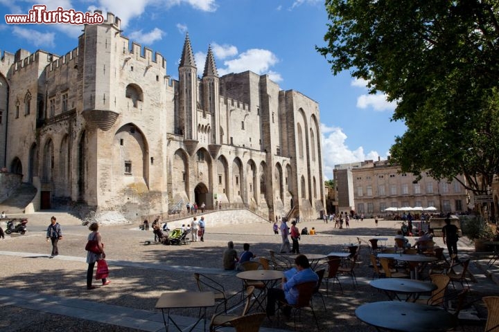 Avignone però porta con se vivo soprattutto il ricordo della Cattività Avignonese, grazie all'incredibile Palazzo dei Papi, opera mirabile di architettura mediovale, ono degli edifici storici più raffinati del vecchio continente. Di solito il primo impatto cona la piazza che introduce al palazzo è di grade effetto, quasi disarmante. Un consiglio del turista è quello di arrivare con l'automobile fino in centro, situato a stretto contatto con un ansa del fiume Rodano. Qui cercate le indicazioni per il parcheggio Palais de Papes, situato sotto alla Place du Palais. Una volta lasciata l'automobile è davvero emozionante riemergere dal parcheggio sotterraneo e trovarsi catapultato indietro di 7 secoli, in pieno medioevo, conl'imponente ma allo stesso tempo leggiadra facciata del palazzo che domina con grande presenza tutta la scena. Di stile gotico, mantiene intatto l'impianto originario, con i bastioni merlati e le due guglie centrali (torri di San Lorenzo) molto particolari.
