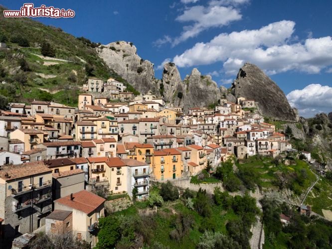 Come il vicino comune di Pietrapertosa, anche Castelmezzano fa parte del circuito dei Borghi più belli d'Italia. Siamo in provincia di Potenza, nel cuore della Basilicata, e questo piccolo paese di 900 abitanti sulle Dolomiti Lucane è costruito su un fianco di una montagna addossato alla roccia nuda.