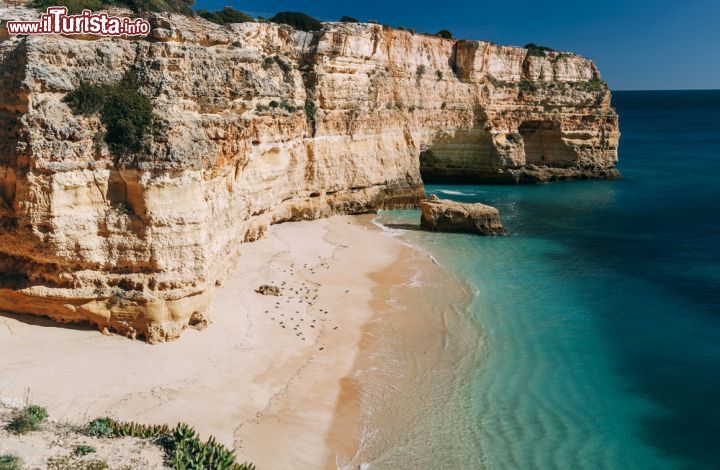 Circondata da un’alta falesia scolpita dall’azione degli elementi, la bellissima Praia da Marinha è considerata una delle cento migliori spiagge del mondo, per la sua natura preservata, quasi allo stato selvaggio. Prima di scendere in spiaggia, lasciatevi incantare dal paesaggio che si avvista dalla cima della falesia che dà accesso all’arenile, e solo dopo scendete la lunga scala. I vostri sforzi saranno ricompensati dalla quiete di questa spiaggia bagnata da un mare soave. Foto Municipio de Lagoa