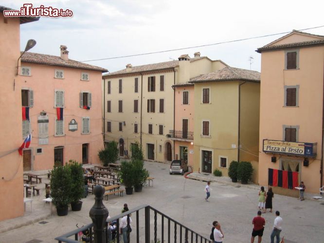La parte più antica del borgo, il “castrum” fortificato risalente all’Alto Medioevo, è abbarbicato alle falde dei Monti Martani e conserva tuttora le mura di cinta, oltre ad alcuni edifici civili e religiosi di grande fascino. Attraversata l’imponente porta d’accesso ci si immette nel centro vero e proprio, su Piazza Umberto I, con la Chiesa di San Felice sulla destra e sulla parte opposta il palazzo che, nel 1849, ospitò Giuseppe e Anita Garibaldi.