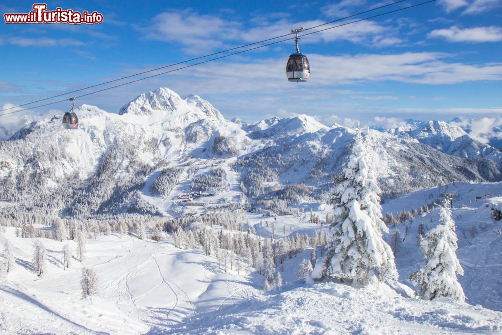 Tentazioni candide e lucenti, sotto un sole luminoso come solo la montagna sa mostrare, nelle giornate più limpide. Sono le piste innevate del più grande comprensorio sciistico della Carinzia, la Nassfeld Skiarena, servite da 30 impianti di risalita ed estese per oltre 110 km di lunghezza: l’area sciistica del Passo di Pramollo è un paradiso spartito tra Italia e Austria, con gli impianti concentrati specialmente sul versante austriaco, che rimane in funzione anche nella stagione estiva per accompagnare i visitatori in qualche passeggiata nel verde.