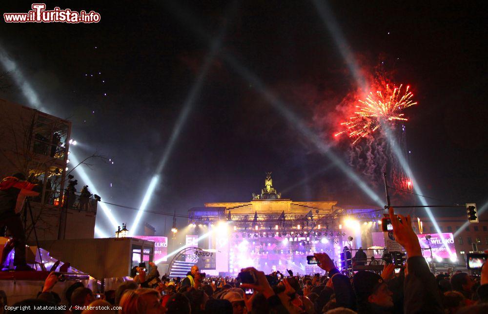 Nonostante le temperature vicine al punto di congelamento, a Berlino si organizza una grande festa di Capodanno in strada alla Porta di Brandeburgo.