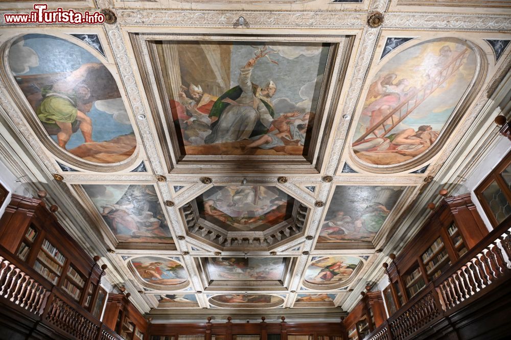 Ed è sempre qui che, durante opere di ripristino, sono stati riportati alla luce gli spazi dell’antica cisterna dell’acqua dove i migliori bianchi e rossi si affinano prima dell’imbottigliamento. “Per ogni tipologia di vino produciamo non più di 4mila bottiglie, con una commercializzazione a 60 mesi di affinamento sui lieviti, tra cui una versione nature” spiega Lunardi. Oltre alla chiesa della Beata Vergine Maria Assunta, cuore del monastero, ci sono la sala capitolare del XV-XVI secolo, il chiostro pensile e quello botanico, il refettorio monumentale con l’affresco della Crocifissione di Bartolomeo Montagna e la biblioteca monumentale con scaffalatura a parete del 1700.