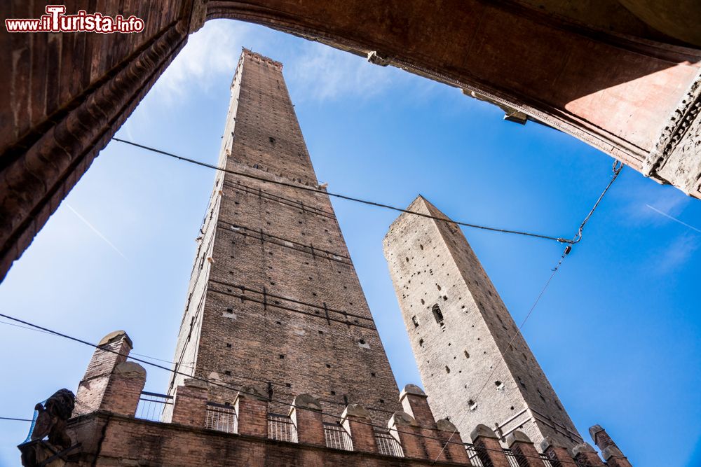 Voltando le spalle alla Basilica di Santo Stefano, dritto di fronte a voi scorgerete l’Asinelli e la Garisenda, meglio note come le Due Torri. Siamo al cospetto di una struttura architettonica di grande importanza per la storia della città, diffusasi nel Medioevo per assolvere a un compito difensivo e militare oltre che per testimoniare il prestigio delle famiglie di appartenenza. Del centinaio di torri che svettavano a Bologna nel XII secolo oggi ne rimangono ancora una ventina, e all’Asinelli e la Garisenda è indubbiamente riservato un posto d’onore. Con una (piuttosto faticosa) scalata di 498 gradini potrete giungere in cima alla più alta delle due, la torre degli Asinelli, a quota 97,2 metri.