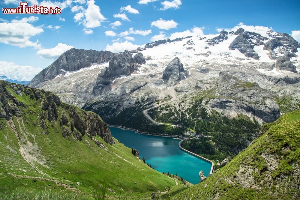 Di particolare suggestione è la particolare conformazione della Marmolada che si presenta con declivi dolci, verdeggianti e accoglienti nella parte più bassa ma si erge spaventosa e spoglia nella parte più alta, regalando bianchissimi dirupi mozzafiato.