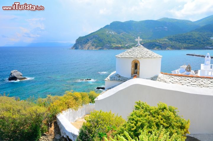 La cappella di Agios Ioannis è forse la location più sorprendente di tutto il film. Si tratta di una cappella costruita in cima a uno scoglio collegato alla terraferma da una passerella. Si trova nella zona nord dell'isola, a circa 7 chilometri da Glossa. Non si hanno notizie certe sull'epoca in cui è stata costruita la chiesa, ma secondo la leggenda locale è stata realizzata esattamente nel luogo in cui venne recuperata un'icona del santo. È in questa piccola chiesa a 100 metri sul mare, a cui si arriva al termine di un'impegnativa scalinata, che è in programma il matrimonio tra Sophie e il suo fidanzato Sky. Altre scene memorabili di Mamma Mia! hanno luogo sulla spiaggia di Kastani, una distesa di sabbia fine che si trova nella zona ovest di Skopelos.