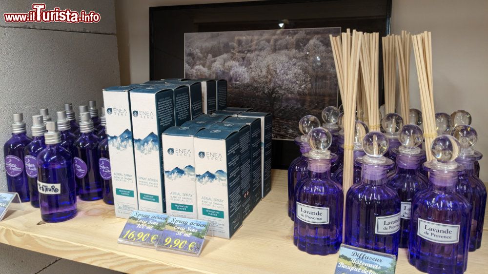 Oltre allo shop dove acquistare i prodotti certificati D.O.P, è possibile fare una visita guidata della distilleria per vedere le varie fasi di produzione. Si inizia con l’essicazione che ha lo scopo di essiccare la pianta (nel caso della lavanda fine, questa fase è preceduta da un appassimento del fiore che richiede circa 2 giorni). Si procede poi con la distillazione a vapore, durante questa fase si riscalda la lavanda (fiori e steli tutti insieme) e si estrae l'olio essenziale sotto forma di vapore. Questa miscela viene fatta condensare e decantare in modo che l’olio galleggi nell’acqua di distillazione e possa essere separato dall’acqua di distillazione. La procedura di distillazione a vapore dura circa 30/40 minuti.