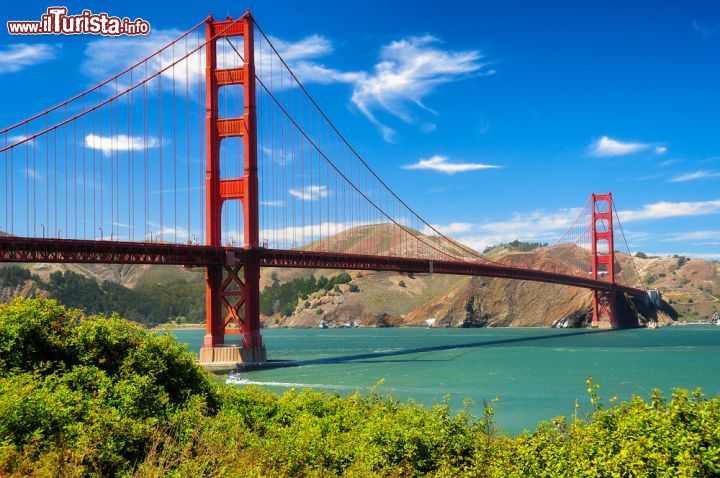 E' uno dei ponti sospesi più belli del mondo e lo ammiriamo spesso in film e telefilm ambientati a San Francisco in California: si tratta del famoso Golden Gate Bridge con i suoi 2,71 chilometri di spettacolare presenza scenica, ormai divenuto il simbolo della città in cui è stato costruito.