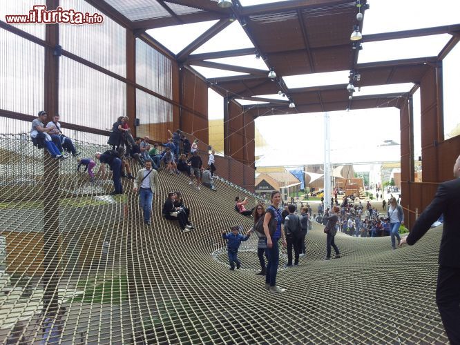 Non servirà convincerli: quando i vostri bimbi vedranno qual è la via d’accesso al padiglione del Brasile, sarà amore a prima vista per quell’enorme rete elastica che simboleggia il “precario” compito di salvaguardare la natura e che loro inevitabilmente scambieranno per un gioco. Balzi e passetti, foto ricordi sospesi a diversi metri da terra: il Brasile per loro potrebbe chiudersi qui. Ed è giusto così. Questa è davvero una delle attrazioni più gettonate dell’intera Esposizione universale. Poco oltre, il padiglione di Save the children organizza molti eventi: non perdete di vista il calendario.