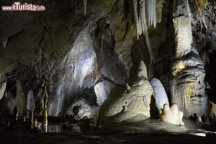 Una surreale nebbiolina aleggia al di sopra di un verdissimo specchio d’acqua profondo 40m, attorno al quale salgono per quasi altri 140m, più rapidamente dello sguardo, vertiginose pareti calcaree ricoperte da una fitta vegetazione, esplodendo violentemente in un’accecante ed enorme apertura verso il cielo. L’Abisso della Macocha, un’impressionate voragine creata dal crollo del tetto di una caverna carsica, prende il nome da una terribile leggenda ad esso legata, che parla di una crudele matrigna (“macocha” in moravo), precipitata nello strapiombo dopo avervi gettato il figlio del marito per gelosia. Da questo punto in poi la visita delle grotte prosegue a bordo di piccole imbarcazioni navigando sulle gelide ed oscure acque del fiume Punkva, attraverso angusti cunicoli e profondi laghetti, giungendo alla meravigliosa Cattedrale di Masaryk, vero e proprio tripudio di concrezioni calcaree dall’aspetto talmente bizzarro da sembrare animate da qualche stregoneria e fare accapponare la pelle.