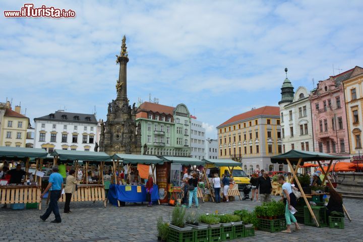 Il suo centro storico è caratterizzato da una moltitudine di enormi ed eleganti piazze traboccanti di sfavillanti fontane, monumenti e architetture barocche, che all’imbrunire si colora di riflessi dalle sfumature lilla e ciclamino, adornate dall’oro degli stucchi che brillano alla calda luce dei lampioni. L’arzigogolata Colonna della Santissima Trinità, protetta dall’Unesco, si erge come massima espressione barocca in memoria della fine della peste, la terribile piaga che sterminò anche in Moravia intere popolazioni.