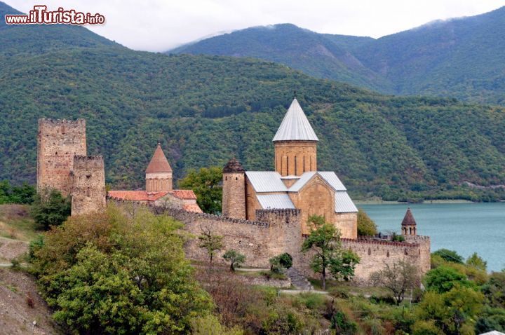 Da Mtskheta proseguiamo verso nord, seguendo le rive del fiume Aragvi, lungo il percorso della Strada Militare Georgiana: dopo una curva, all'improvviso compare il castello di Ananuri, nel punto in cui il fiume si allarfa a formare il lago di Zhinvali formato da una diga più a valle. Località di grande fascino tra le prime montagne di rilievo che s'incontrano prveniendo da Tiblisi, il complesso di Ananuri vanta due distinte fortezze unite da una cinta muraria, mentre all'interno si trovano due chiese del 17° secolo: